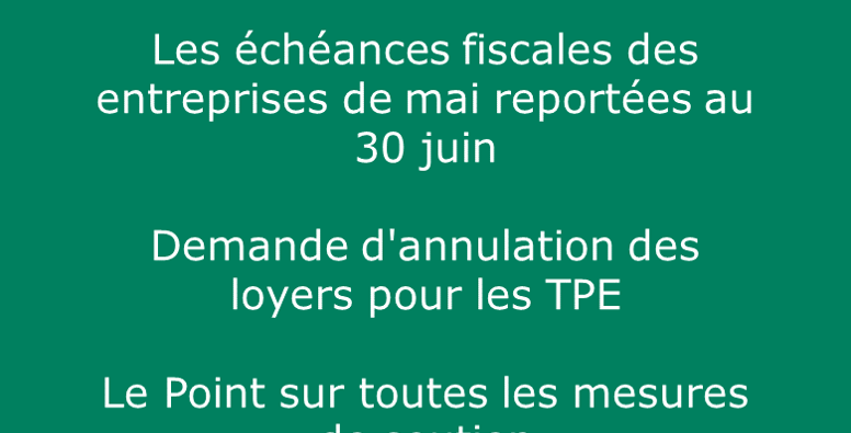 Les échéances fiscales des entreprises du mois de mai sont reportées au 30 juin