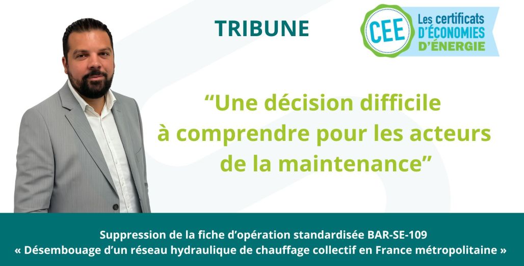 La fiche BAR-SE-109 – Désembouage des réseaux de chauffage collectif a été supprimée du dispositif des CEE à la suite d'un arrêté publié au JO du 8 février. « Une décision difficile à comprendre pour les acteurs de la maintenance », pour le Directeur général du SYNASAV, Cyril RADICI.