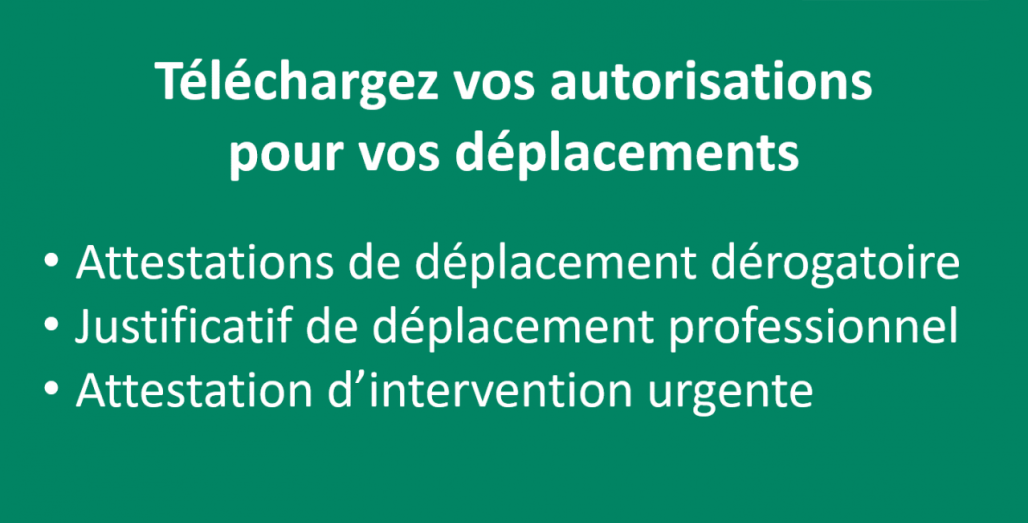 COVID-19 - En téléchargement : Attestation de déplacement dérogatoire - Justificatif de déplacement professionnel - Attestation SYNASAV d'intervention en urgence
